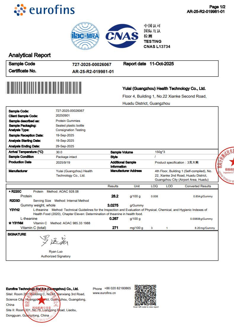 Trusted Testing on our Single Serve packs of 18 gummies proving 16g Protein per serving +- 5% MOE.