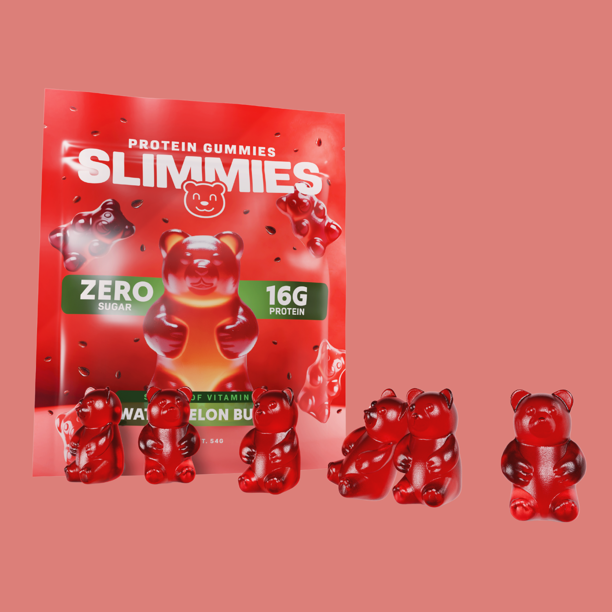Meet your new post-workout fix: Slimmies Watermelon Protein Gummies. Each single-serve pack delivers 16g of clean, high-quality protein in bite-sized candy form.